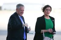 White House Chief of Staff Mark Meadows, left, walks with senior aide Cassidy Hutchinson before a campaign rally in North Carolina on October …